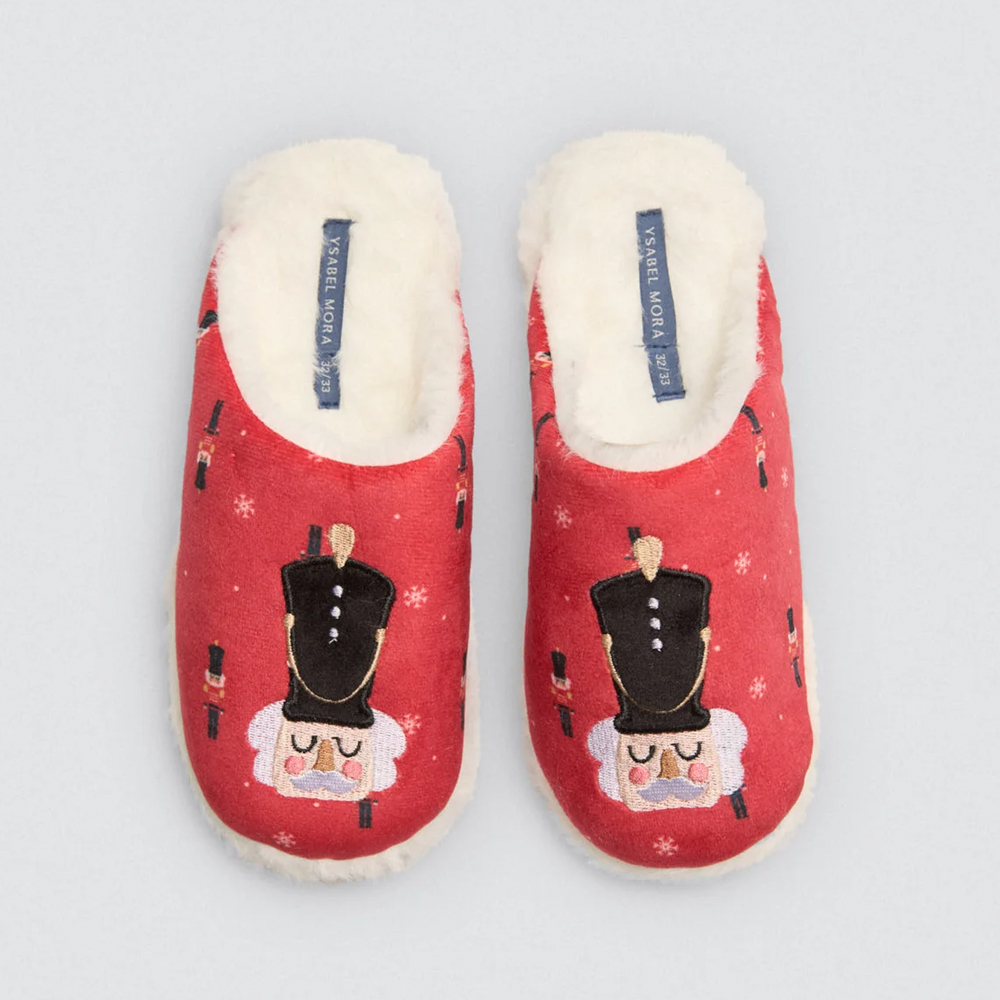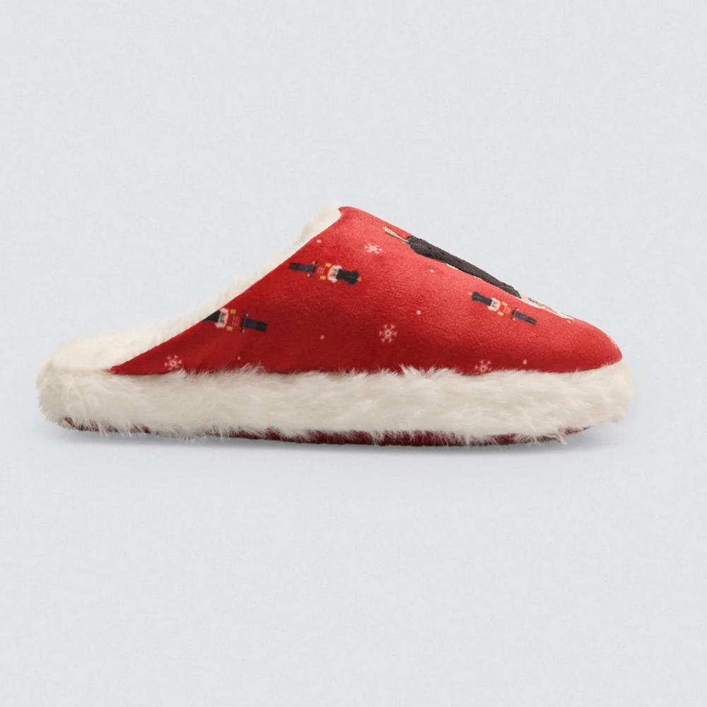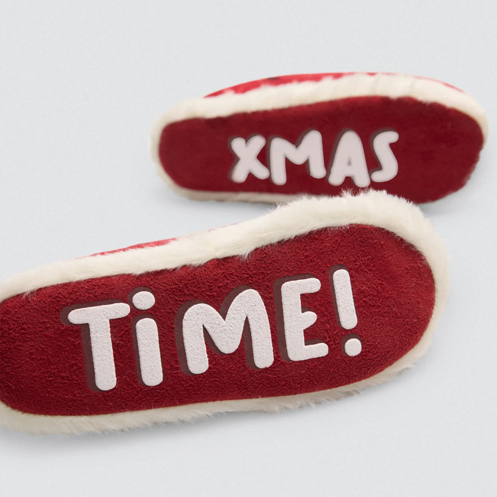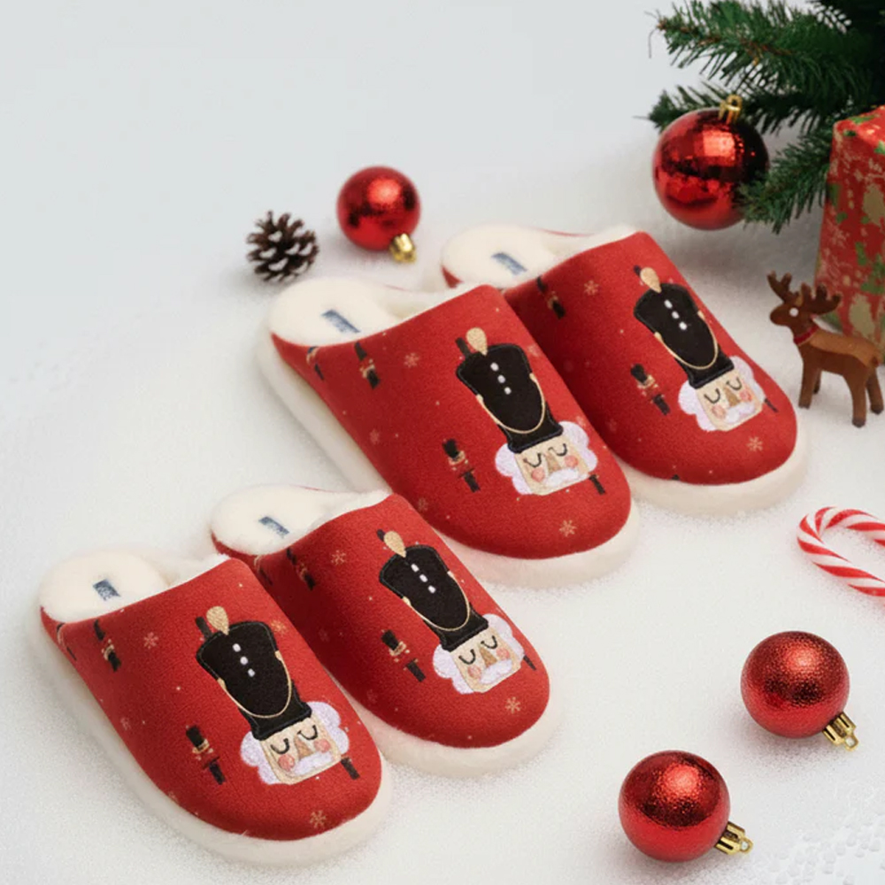 Κατασκευασμένες από απαλό ύφασμα και ζεστή επένδυση, απεικονίζουν τον κλασικό Καρυοθραύστη σε κόκκινο φόντο και μια διασκεδαστική, αντιολισθητική σόλα με το μήνυμα “XMAS TIME!”.