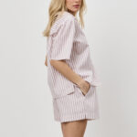 Αναβαθμίστε τις στιγμές χαλάρωσής σας με τη γυναικεία πιτζάμα Elow. Με ένα γλυκό και στιλάτο ριγέ μοτίβο στις αποχρώσεις του ροζ και του γκρι, αυτό το σετ προσφέρει την απόλυτη ισορροπία ανάμεσα στη νεανική διάθεση και τη διαχρονική κομψότητα.